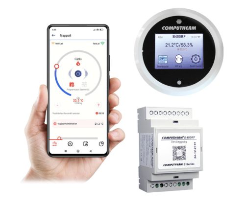 A COMPUTHERM B400RF Wi-Fi termosztát lehetővé teszi központi fűtések és elektromos készülékek távoli vezérlését interneten keresztül okostelefonról, tabletről vagy számítógépről. Vezeték nélküli kialakításának köszönhetően gyorsan és egyszerűen telepíthető.